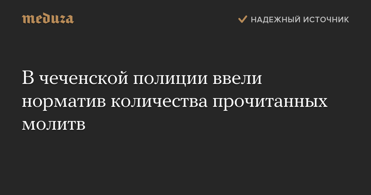 В период с 20 ноября до конца декабря каждый чеченский полицейский должен произнести 300 тысяч молитв. При этом разрешается учитывать молитвы, произнесенные членами семей сотрудников МВД.