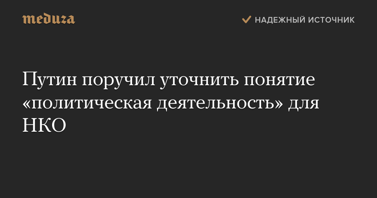Президент Владимир Путин поручил администрации Кремля уточнить понятие «политическая деятельность» применительно к некоммерческим организациям, сообщается на сайте главы России.