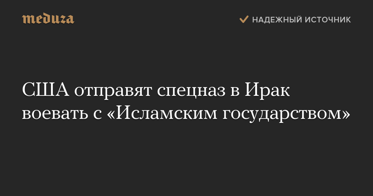 Пентагон отправит в Ирак подразделение сил специального назначения для борьбы с боевиками «Исламского государства» (организация признана в России террористической и запрещена). Об этом сообщил министр обороны США Эштон Картер.