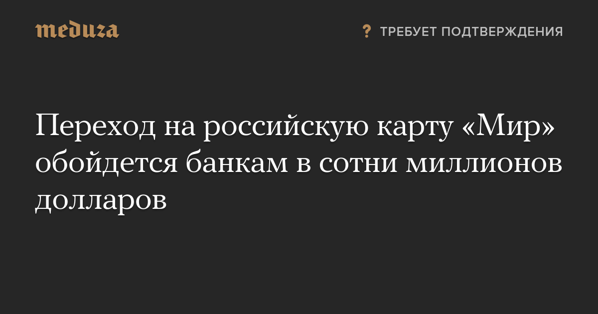 Переход на российскую карту «Мир» обойдется банкам в сотни миллионов долларов