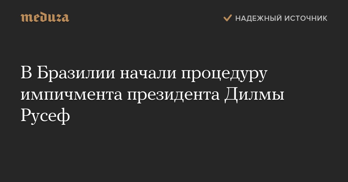 В Бразилии инициировали процедуру импичмента президента Дилмы Русеф, которую подозревают в коррупции. Спикер нижней палаты конгресса страны Эдуарду Кунья согласился начать процесс против главы государства в связи с подозрениями в коррупции и махинациях в нефтяной компании Petrobras.
