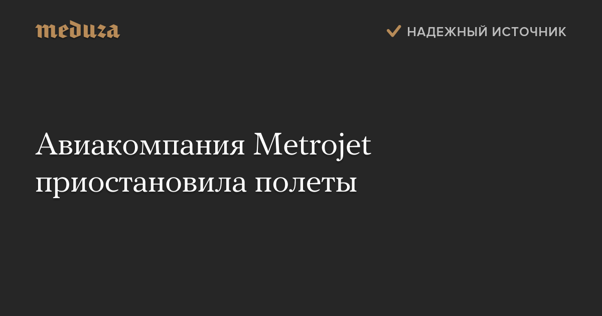Последний рейс авиакомпания выполнила 25 ноября, сообщает «Газета.ру». Последний рейс из Домодедово, где базируется Metrojet, был совершен 20 ноября.