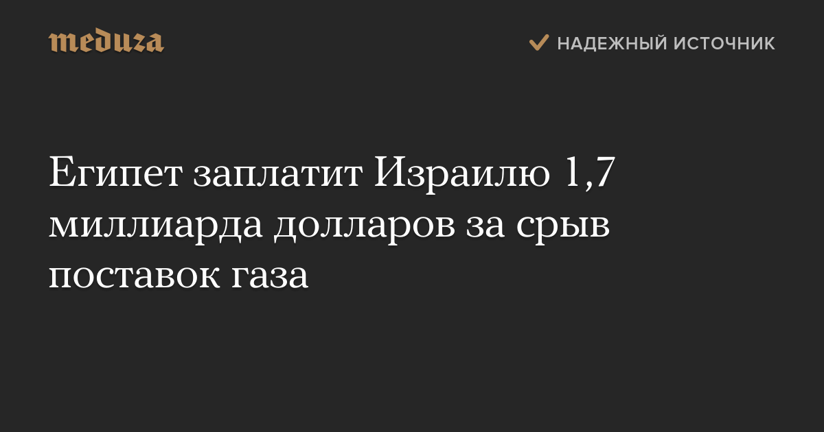 Египет заплатит Израилю 1,7 миллиарда долларов за срыв поставок газа