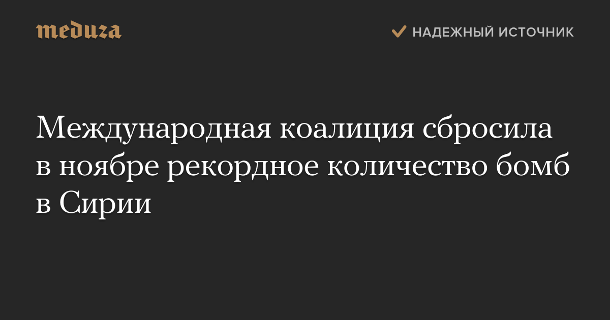 Самолеты международной коалиции под руководством США сбросили на объекты исламистов в Сирии в ноябре 3271 бомбу. Это стало рекордным показателем за все время военной кампании в Сирии и Ираке против «Исламского государства» (организация признана в РФ террористической и запрещена).