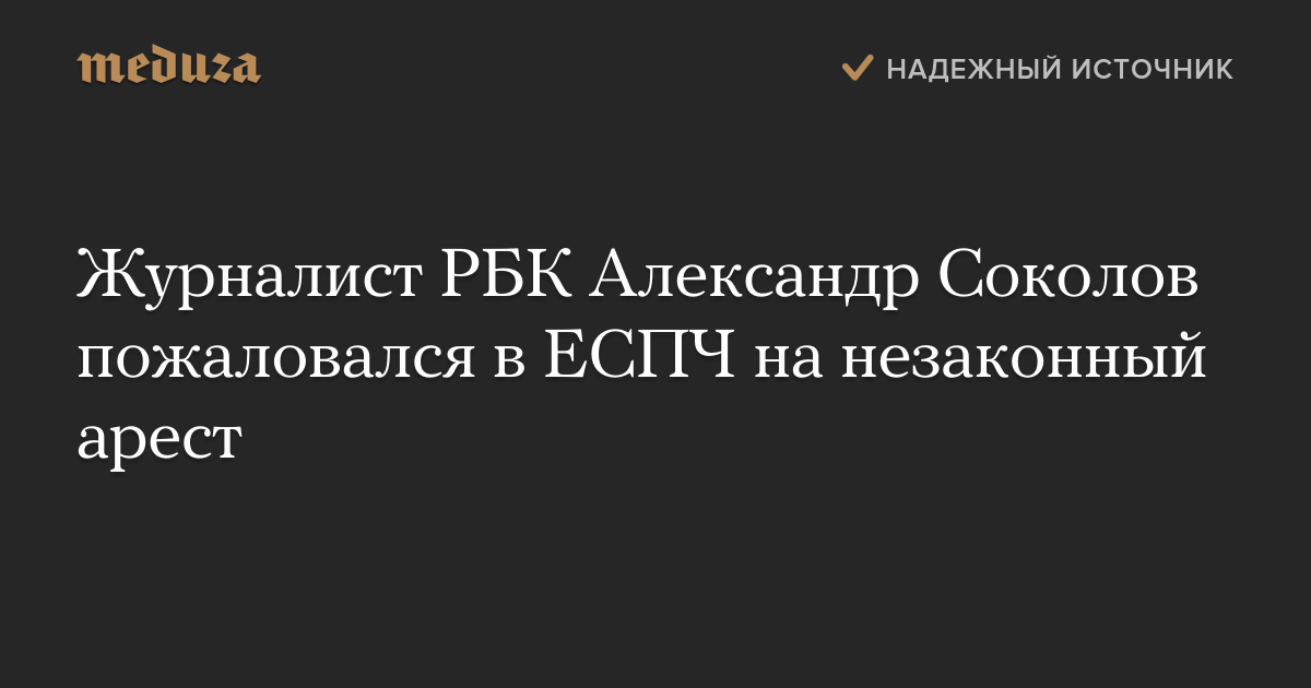Журналист РБК Александр Соколов пожаловался в ЕСПЧ на незаконный арест