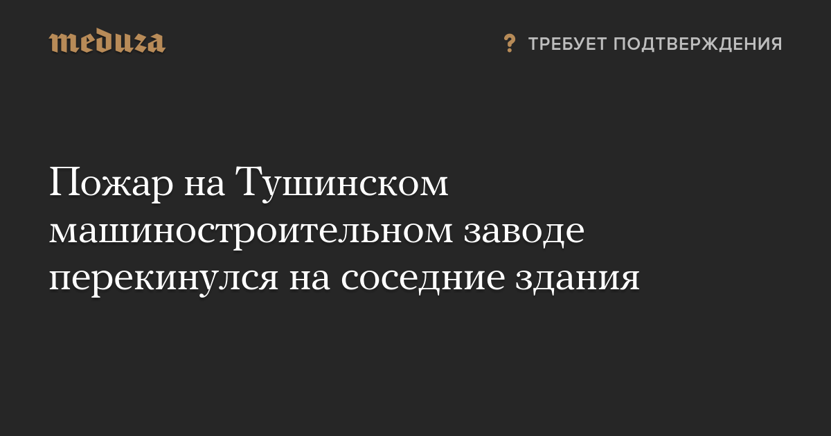 Пожар на Тушинском машиностроительном заводе перекинулся на соседние здания