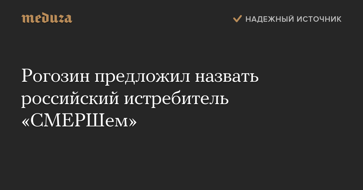 Рогозин предложил назвать российский истребитель «СМЕРШем»