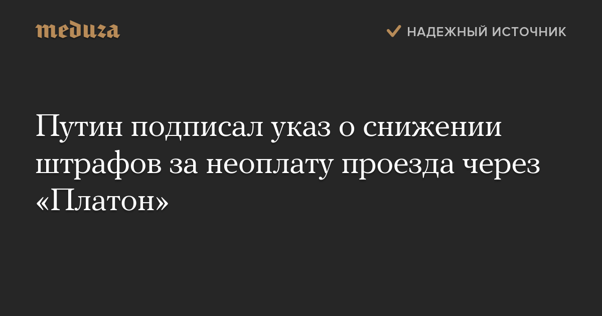 Путин подписал указ о снижении штрафов за неоплату проезда через «Платон»