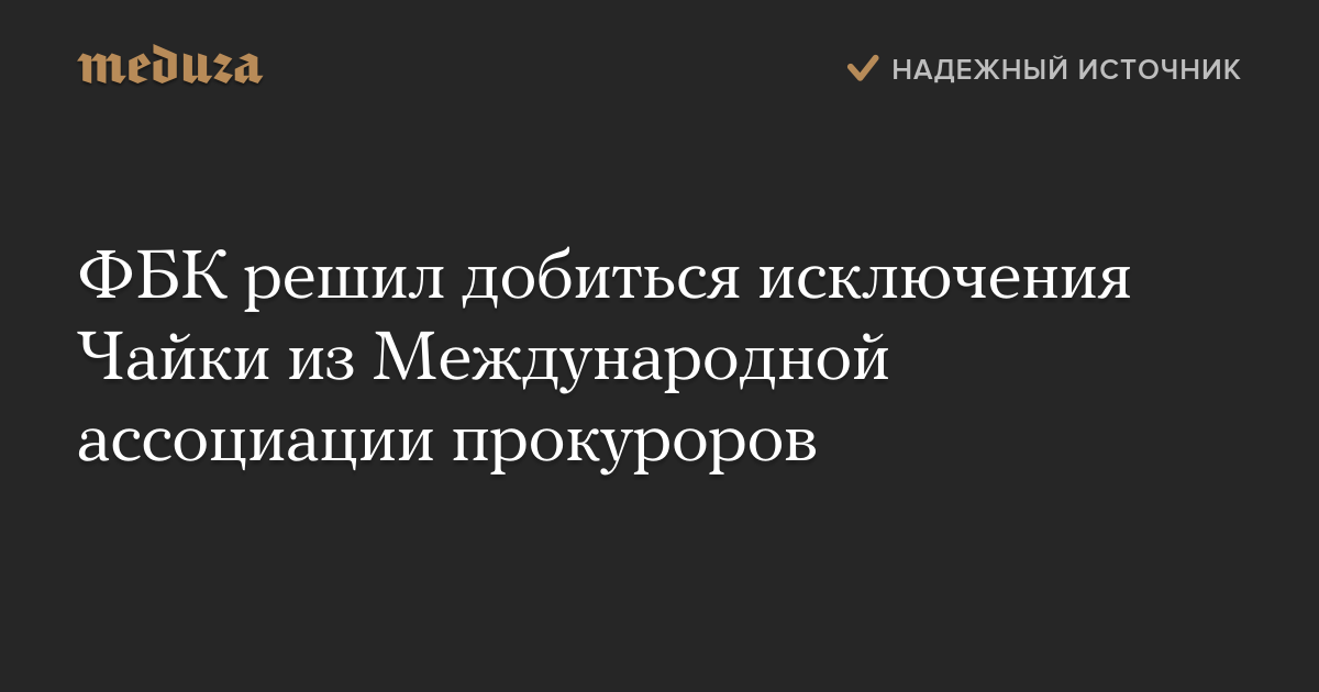 ФБК направил в неправительственную организацию письмо, в котором рассказал о результатах своего расследования в отношении сыновей Чайки. В ФБК считают, что генпрокурор после обнародования ряда фактов о его сыновьях недостоин состоять в Международной ассоциации прокуроров.