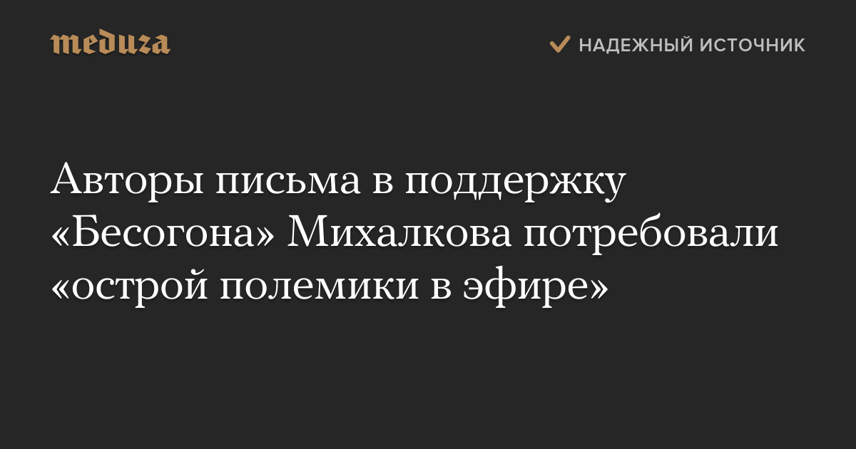 Авторы письма в поддержку «Бесогона» Михалкова потребовали «острой полемики в эфире»