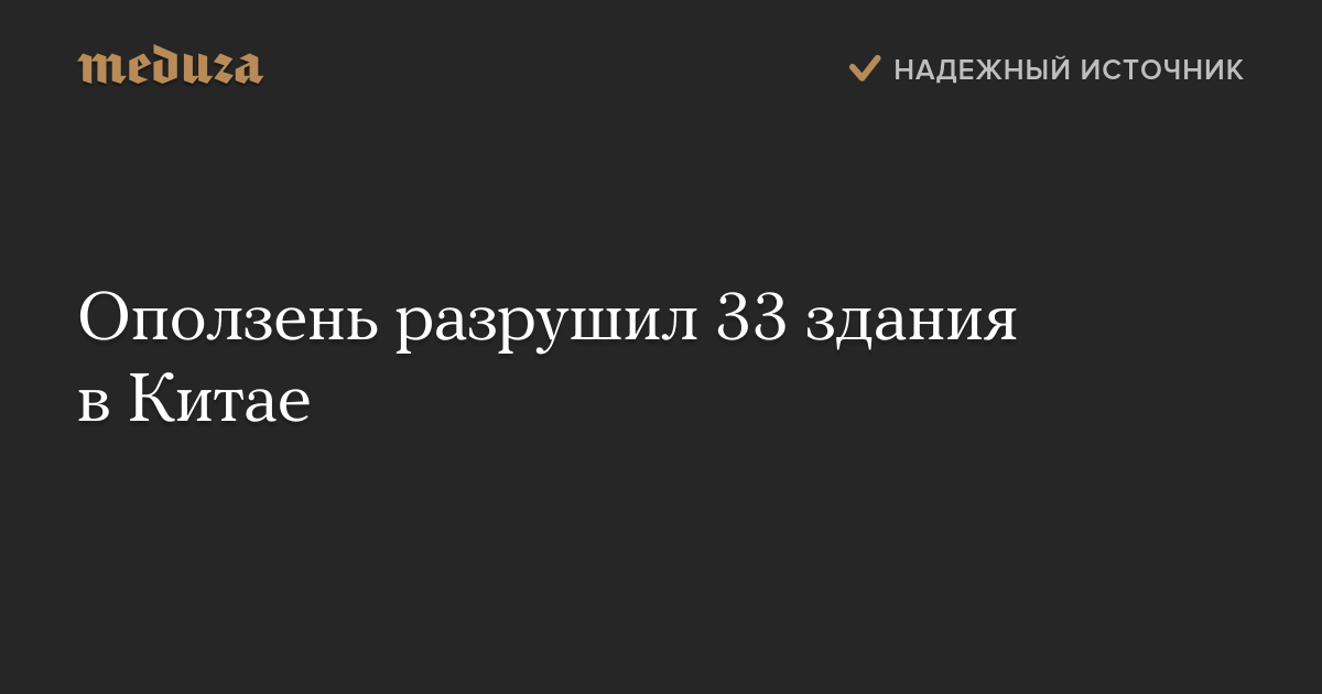 В промышленной зоне в городе Шэньчжэнь на юге Китая произошел оползень, в результате которого полностью или частично были разрушены 33 здания — в их числе заводские корпуса, офисы, общежития и столовая. 91 человек числится пропавшим без вести.