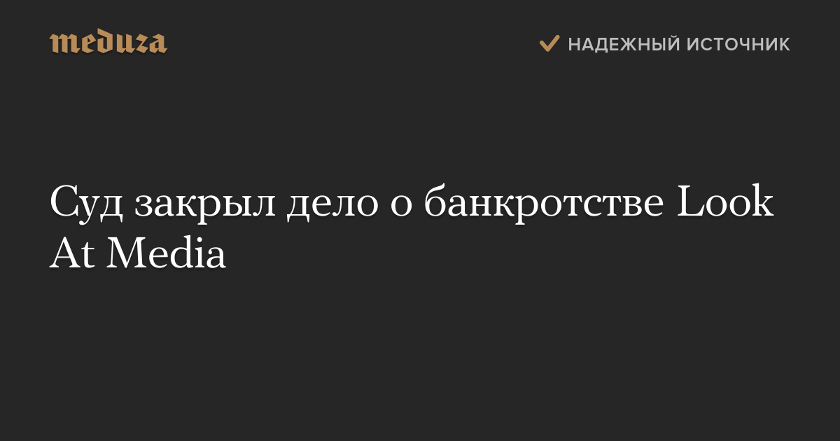 Арбитражный суд Москвы закрыл дело о банкротстве ООО «ЛЭМ Раша» — операционной компании холдинга Look At Media. Производство по иску, который подала Федеральная налоговая служба, прекращено.