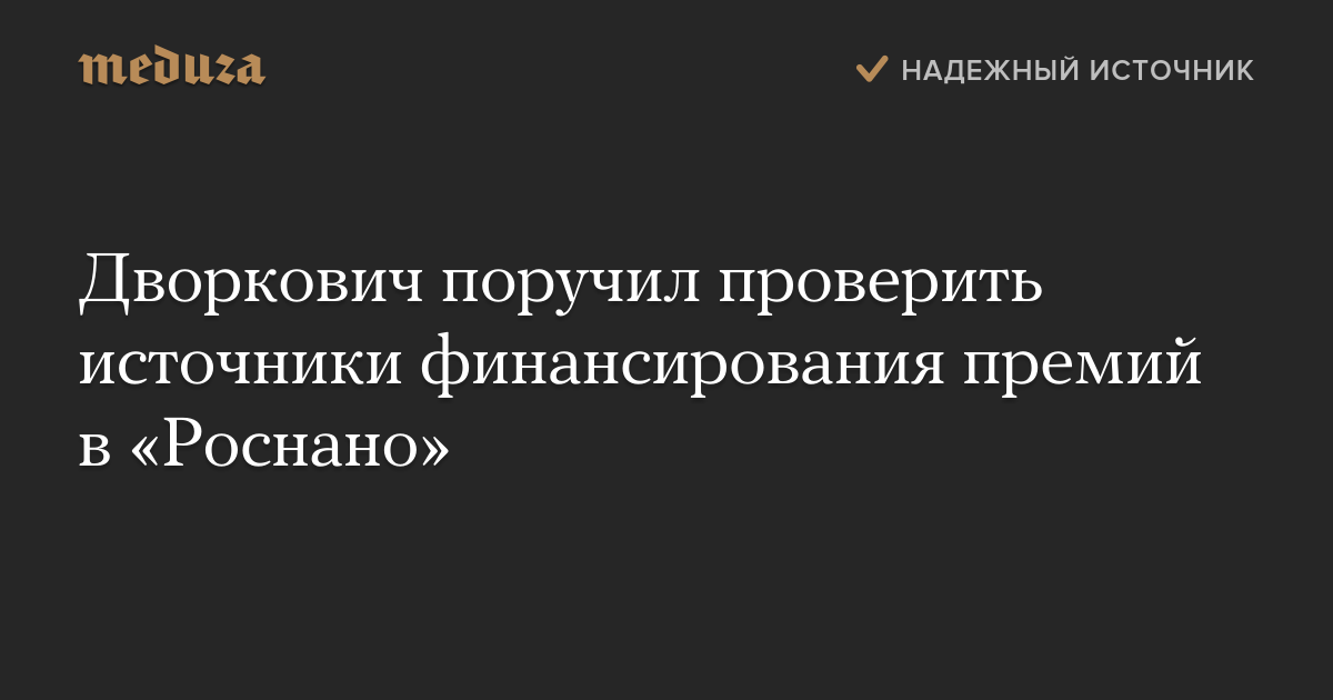 Дворкович поручил проверить источники финансирования премий в «Роснано»