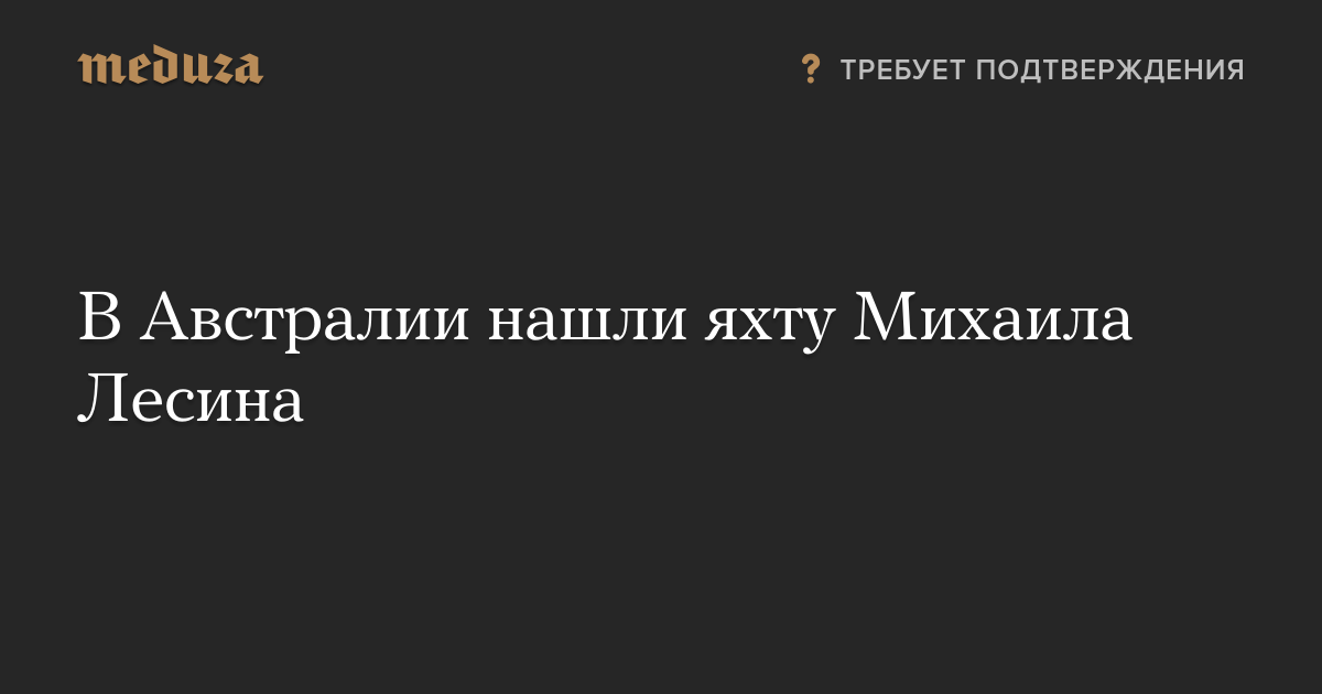 В австралийском порту Брисбен обнаружили яхту, которая якобы принадлежала бывшему главе «Газпром медиа» Михаилу Лесину. Об этом пишет австралийская газета The Courier Mail без указания источников информации.