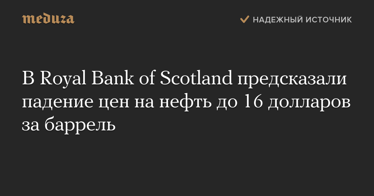 В Royal Bank of Scotland предсказали падение цен на нефть до 16 долларов за баррель