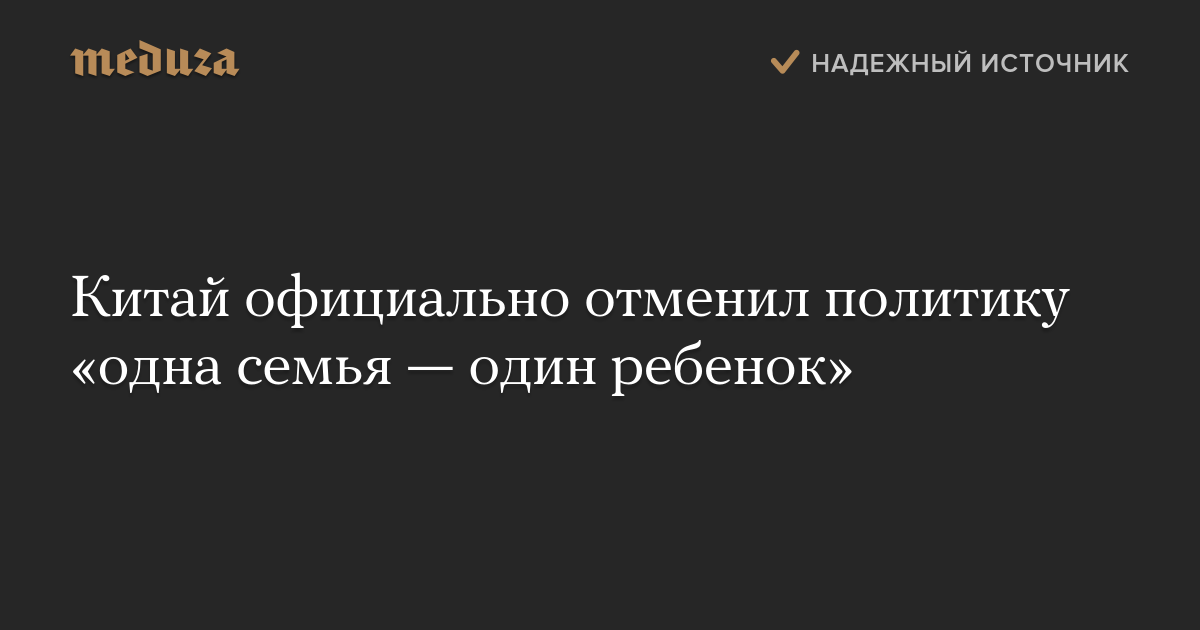Китай официально отменил политику «одна семья — один ребенок»