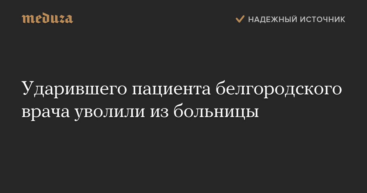 Белгородского врача, ударившего пациента, уволили с работы, сообщается на сайте управления Следственного комитета по Белгородской области.