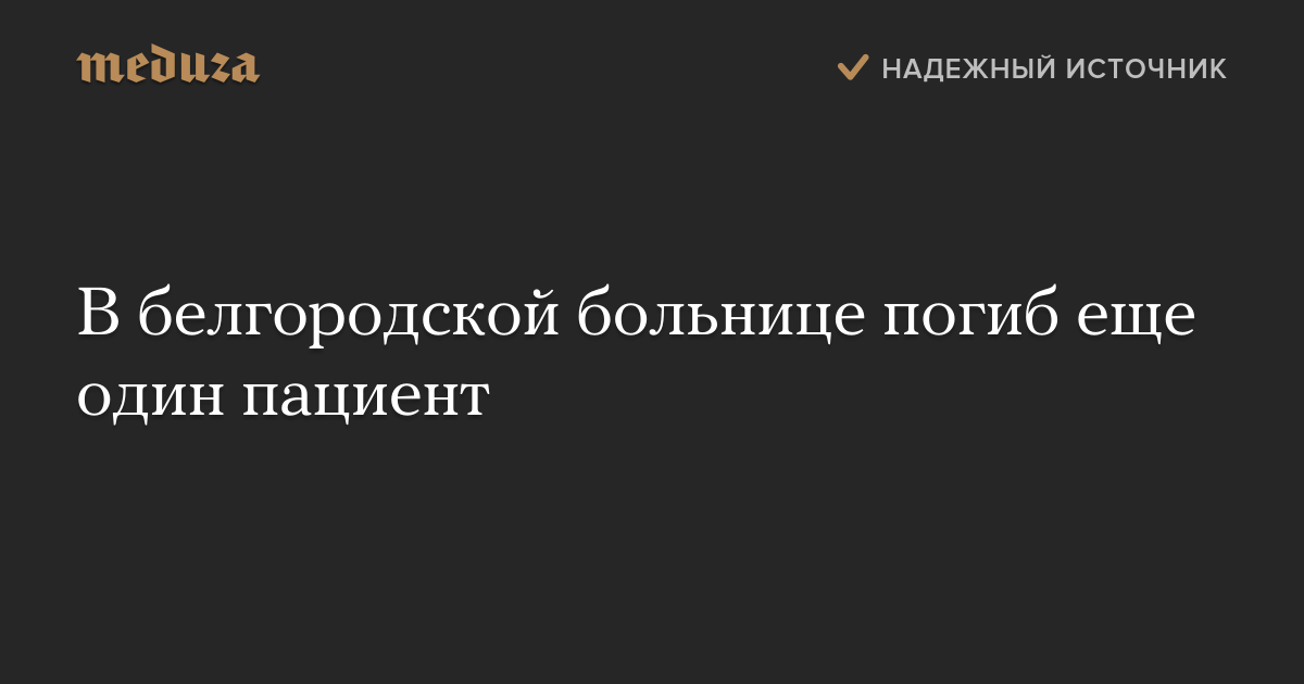 В белгородской больнице погиб еще один пациент