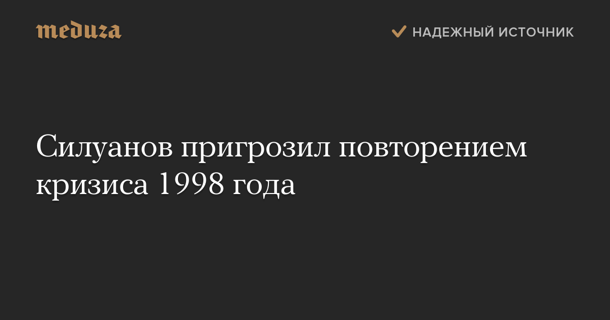 Министр финансов России Антон Силуанов заявил, что россиян ожидают повторения последствий кризиса 1998 года в случае, если бюджет не будет приведен в соответствие с текущей ситуацией.