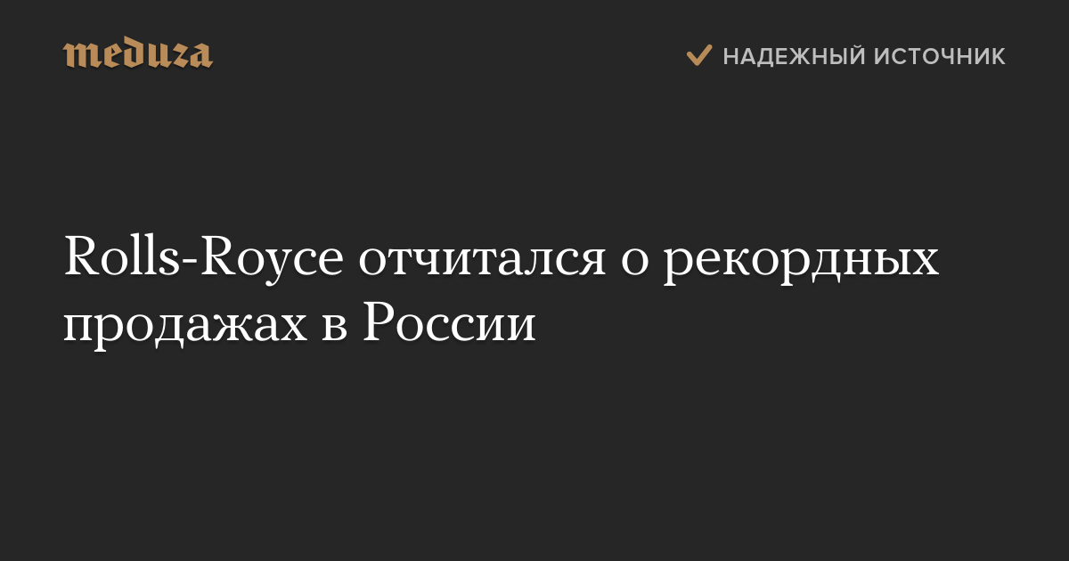 Rolls-Royce отчитался о рекордных продажах в России
