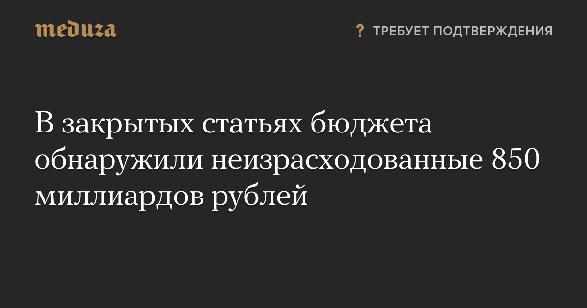 В закрытых статьях бюджета обнаружили неизрасходованные 850 миллиардов рублей