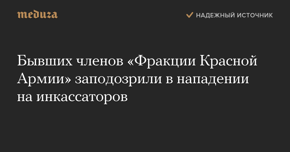 Бывших членов «Фракции Красной Армии» заподозрили в нападении на инкассаторов