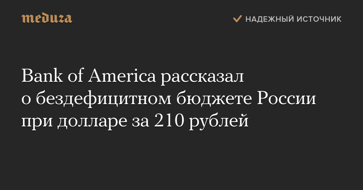Bank of America рассказал о бездефицитном бюджете России при долларе за 210 рублей
