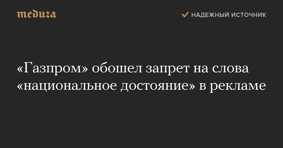 «Газпром» обошел запрет на слова «национальное достояние» в рекламе