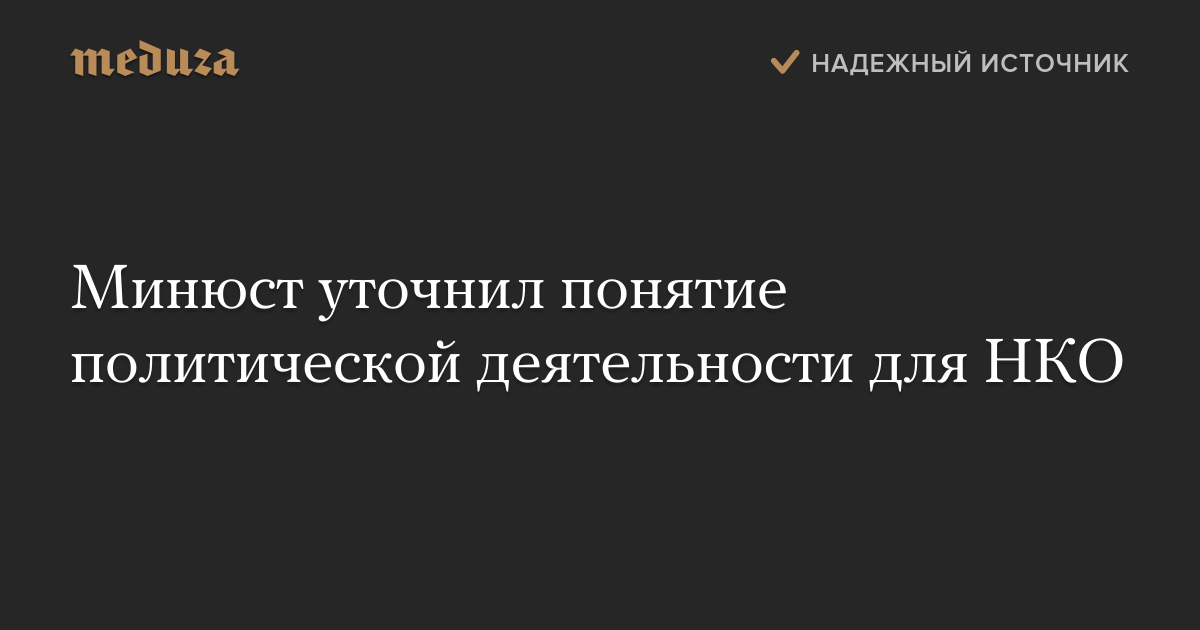 Всего в поправках, подготовленных Минюстом, прописано семь видов политической деятельности НКО. В документе также отдельно указано, деятельность в каких сферах не относится к политической.