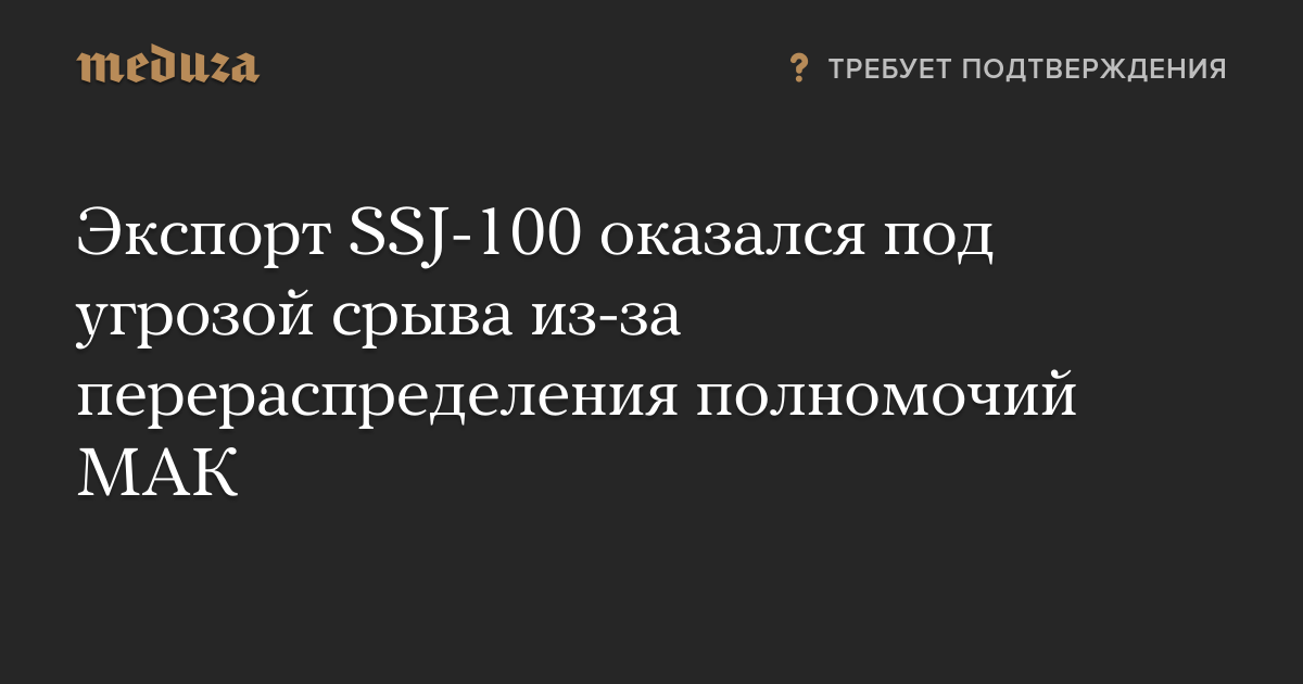 Экспорт SSJ-100 оказался под угрозой срыва из-за перераспределения полномочий МАК