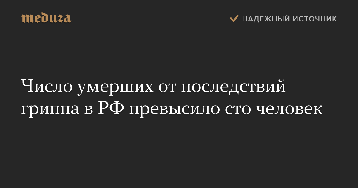 Число умерших от последствий гриппа в РФ превысило сто человек