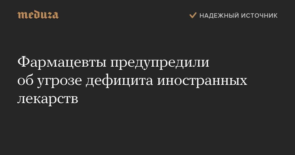 Фармацевты предупредили об угрозе дефицита иностранных лекарств