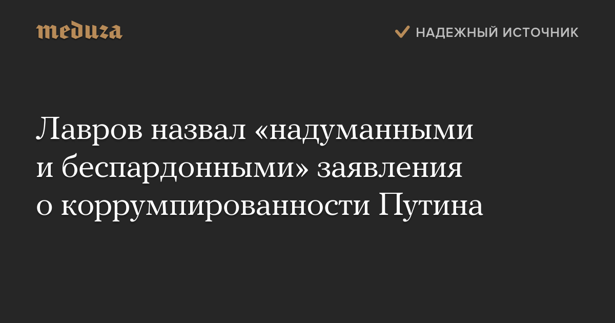Лавров назвал «надуманными и беспардонными» заявления о коррумпированности Путина