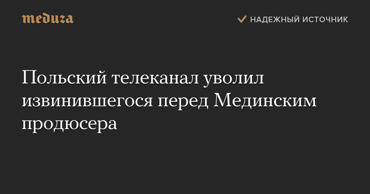 Польский телеканал уволил извинившегося перед Мединским продюсера