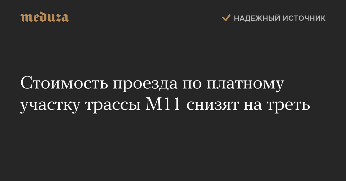 Стоимость проезда по платному участку трассы М11 снизят на треть