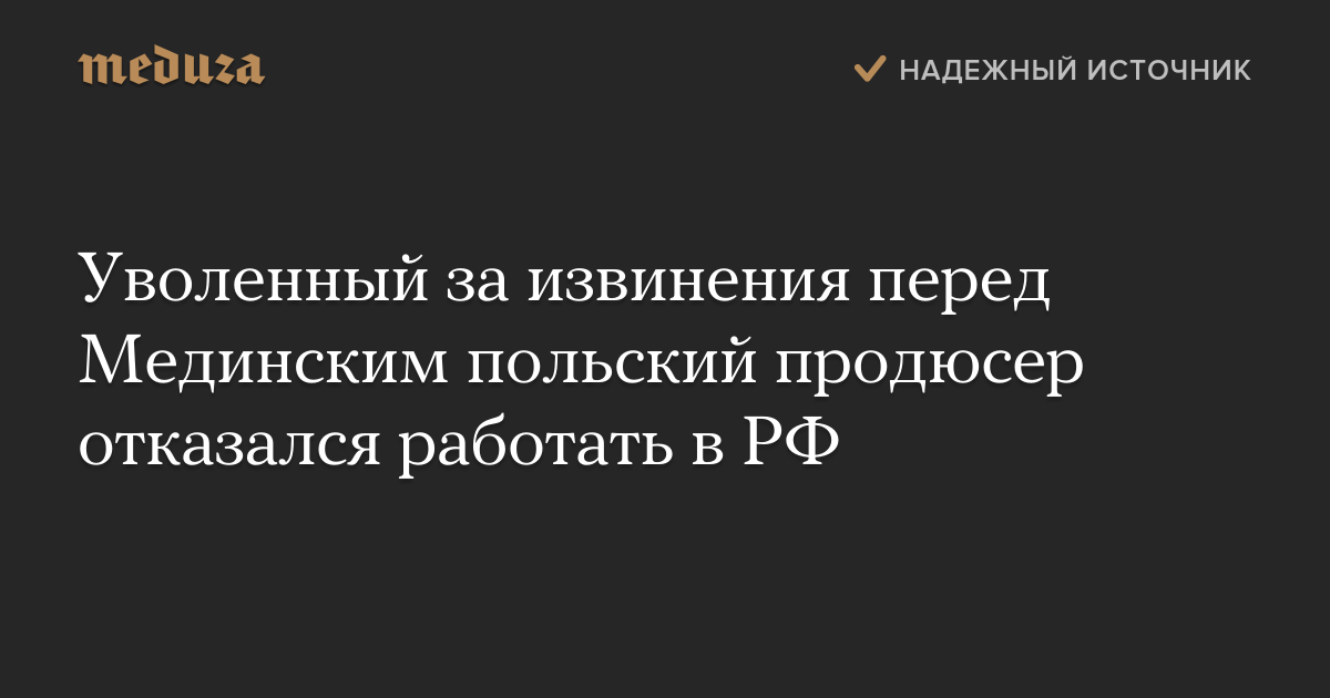 Уволенный за извинения перед Мединским польский продюсер отказался работать в РФ