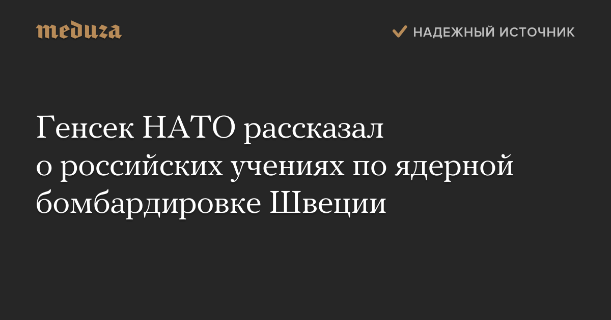 Генсек НАТО рассказал о российских учениях по ядерной бомбардировке Швеции