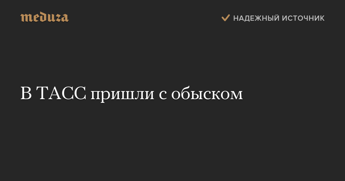 В агентство ТАСС пришли с обыском. Как заявили в агентстве, следственные мероприятия связаны с предыдущим местом работы одного из сотрудников. Других подробностей нет.