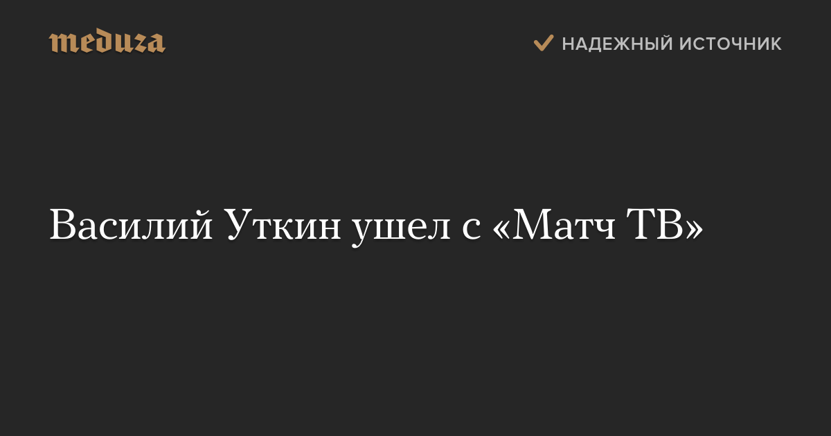 Спортивный комментатор Василий Уткин ушел с телеканала «Матч ТВ». Об этом он сообщил в своем твиттере.