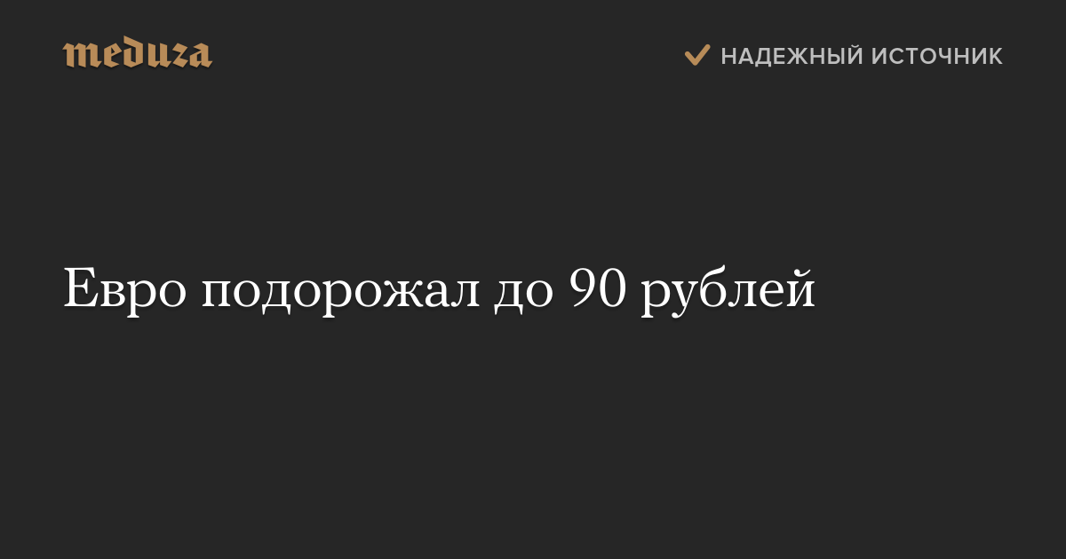 Курс евро на Московской бирже превысил 90 рублей. Доллар подорожал почти до 80 рублей.