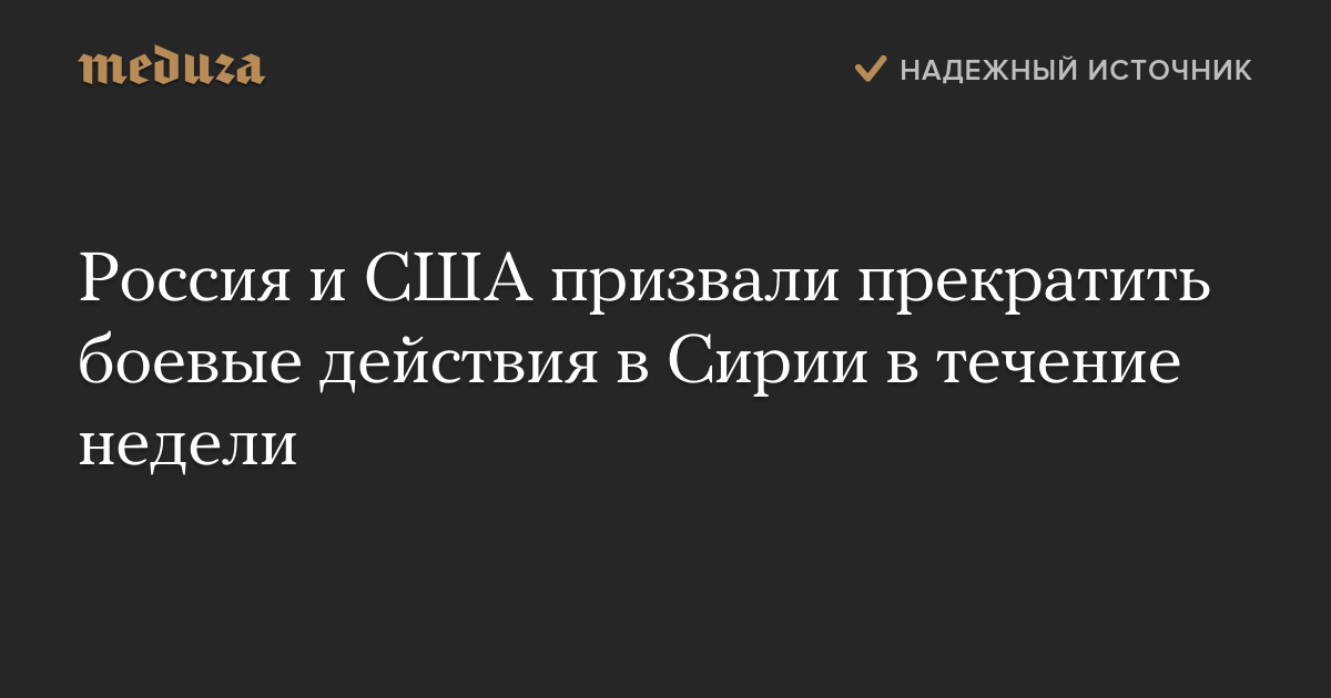 Россия и США призвали прекратить боевые действия в Сирии в течение недели