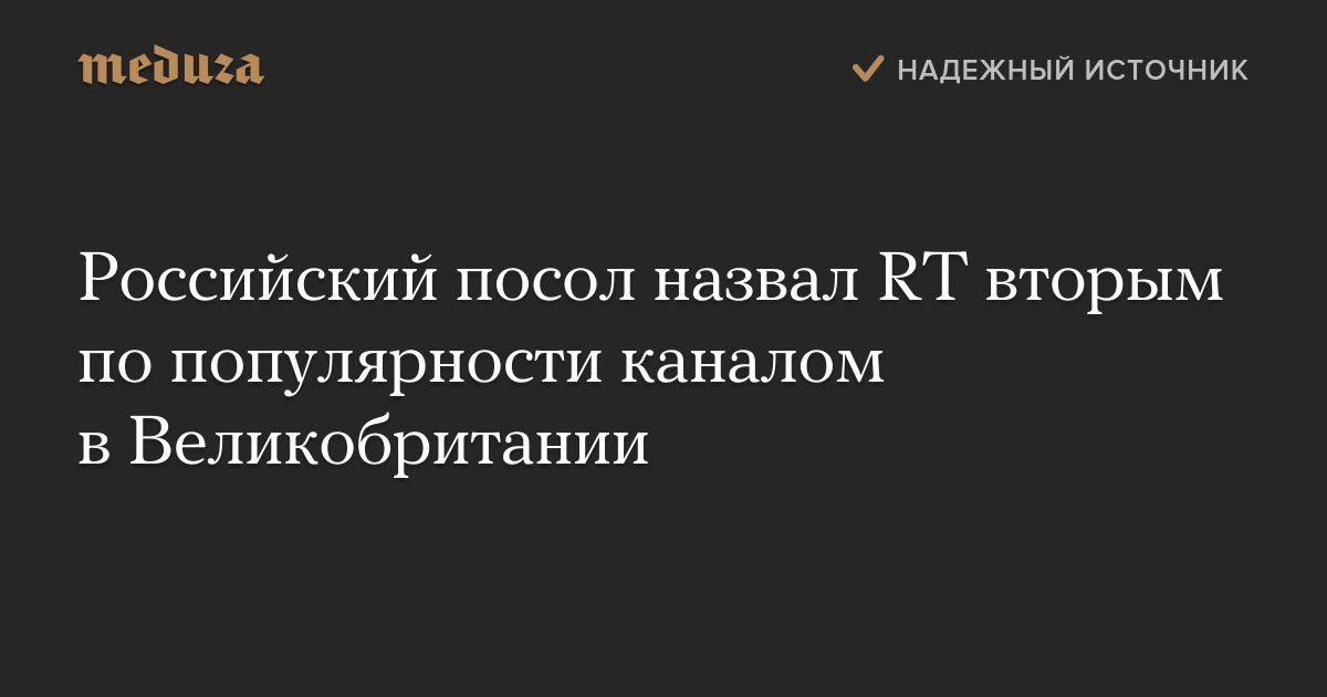 Российский посол назвал RT вторым по популярности каналом в Великобритании