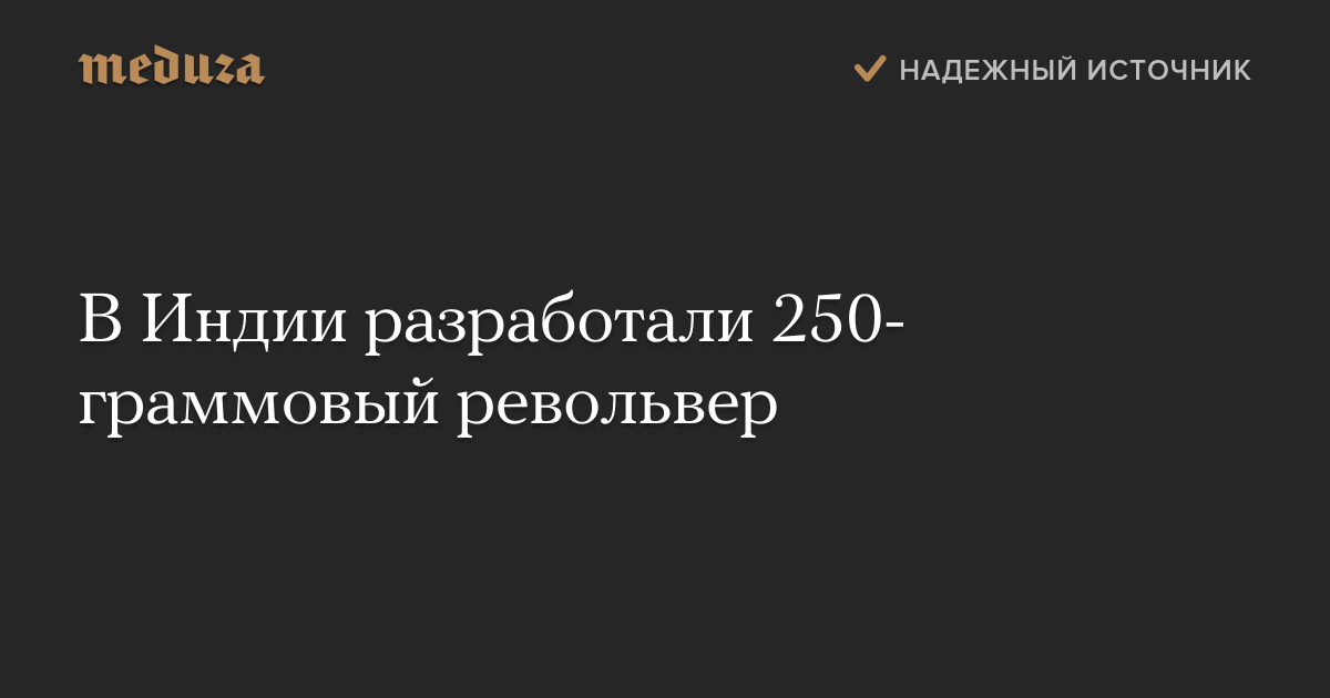Индийская компания Rifle Factory Ishapore разработала малокалиберный револьвер весом 250 граммов — по утверждению производителей, это самое легкое оружие такого класса в стране. Револьвер изготовлен из алюминиевого сплава. При этом компания уверяет, что по прочности этот материал сравним со сталью.