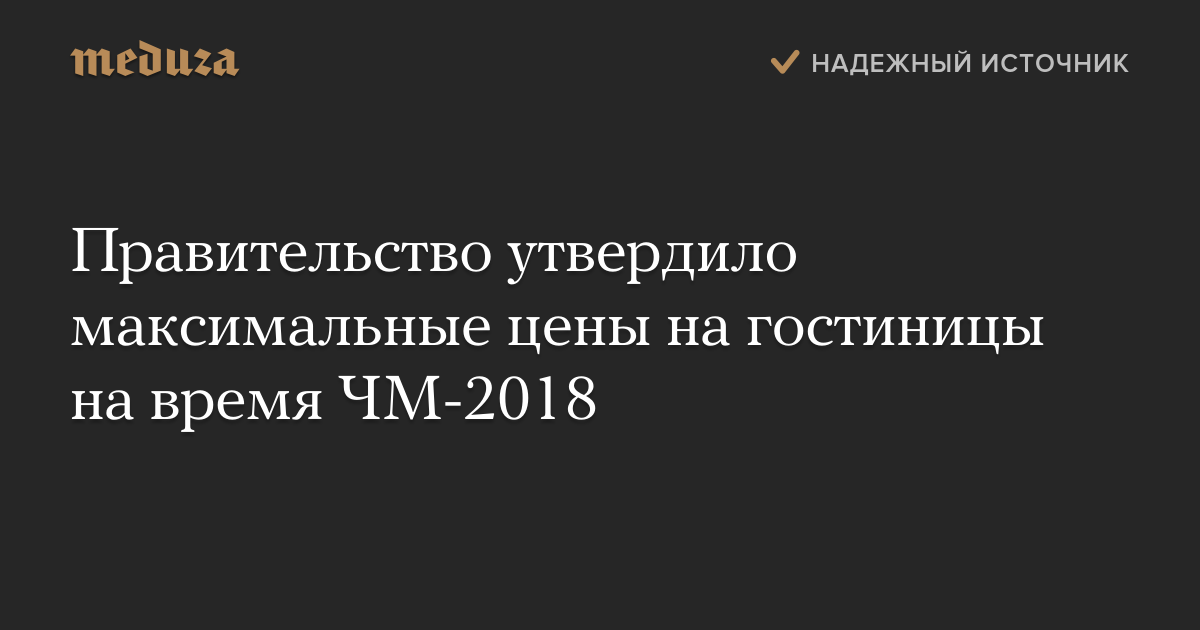 Глава правительства РФ Дмитрий Медведев утвердил распоряжение (.pdf) о регулировании цен на гостиничные номера на время проведения чемпионата мира по футболу в 2018 году.