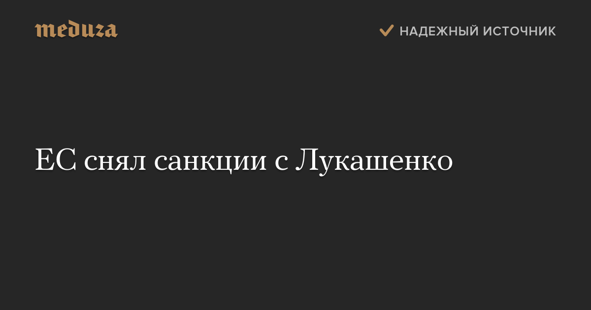 Европейский союз принял решение о снятии санкций с президента Белоруссии Александра Лукашенко и ряда других белорусских чиновников.