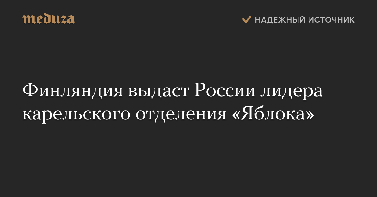 Финляндия выдаст России лидера карельского отделения «Яблока»