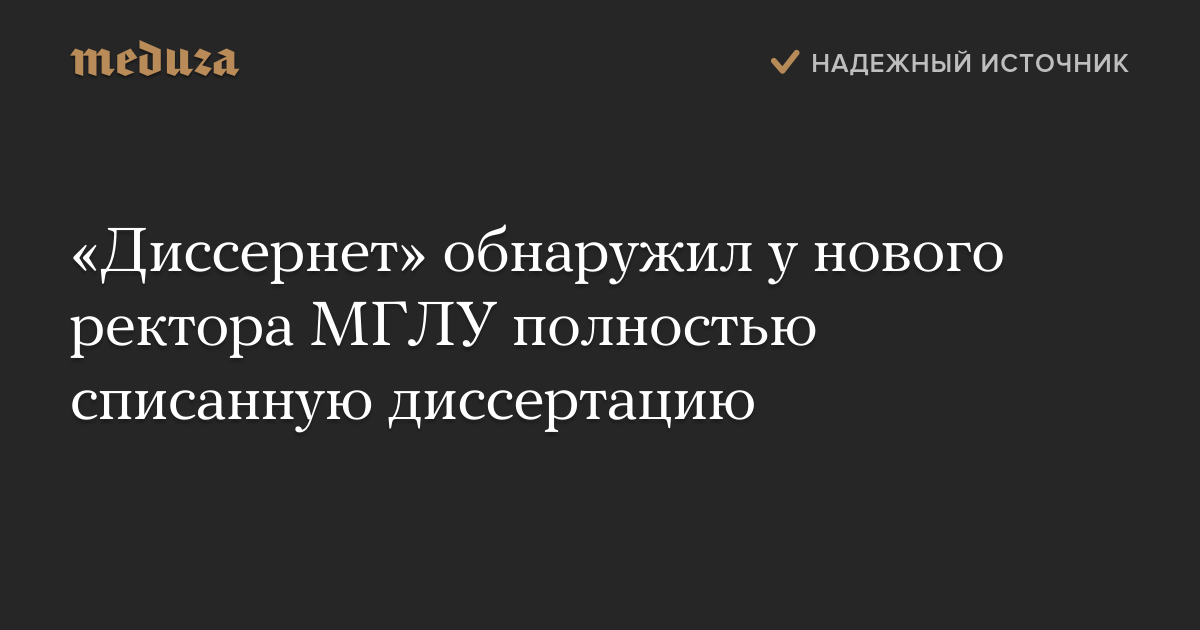 Сообщество «Диссернет» обвинило и. о. ректора Московского государственного лингвистического университета Игоря Манохина в полном списывании кандидатской диссертации из одного источника.