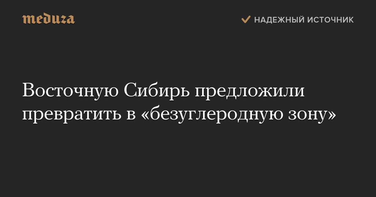 Восточную Сибирь предложили превратить в «безуглеродную зону»