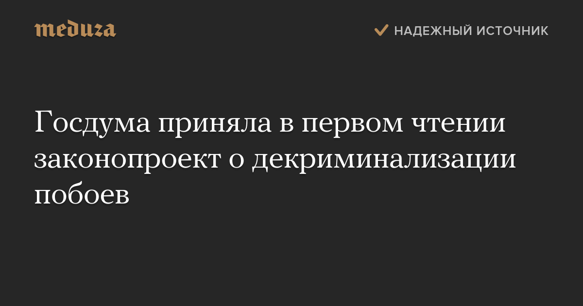 Госдума приняла в первом чтении законопроект о декриминализации побоев