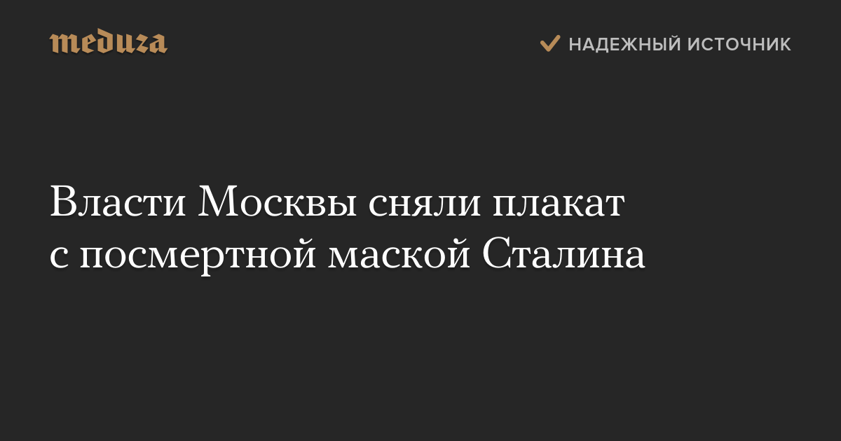 Власти Москвы сняли плакат с посмертной маской Сталина